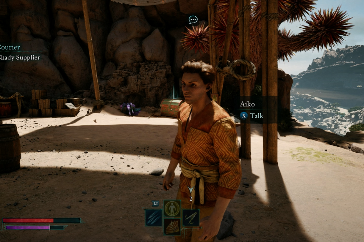 Talk to Aiko: Once the spiders are defeated, speak to Aiko by the campfire. He’ll explain the package’s contents (fungal growths from Dreamthralls). Aiko will offer you the Suspicious Package but asks for 500 Skeyt or you can lie and claim you don’t have the money.