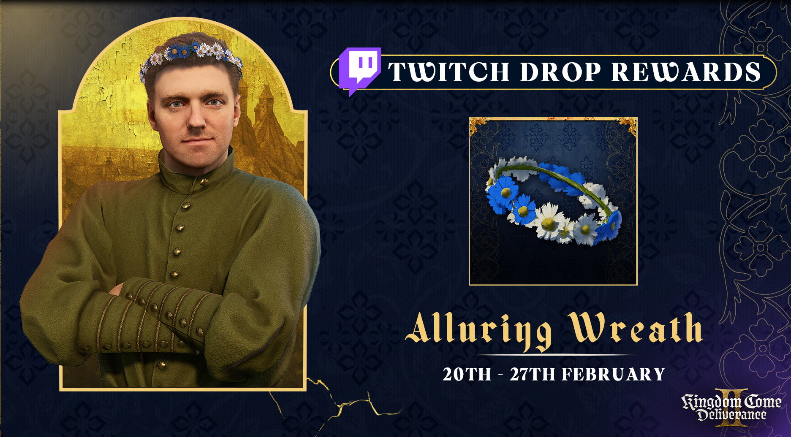 The Alluring Wreath is a limited-time Twitch Drop reward in Kingdom Come: Deliverance 2. It’s a decorative headpiece made of wood and flowers. It looks nice but will prevent you from wearing a helmet—so, fashion or protection, the choice is yours.