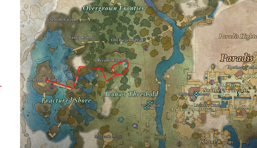Fast travel to Dehengen’s Cottage in the western part of Dawnshore.