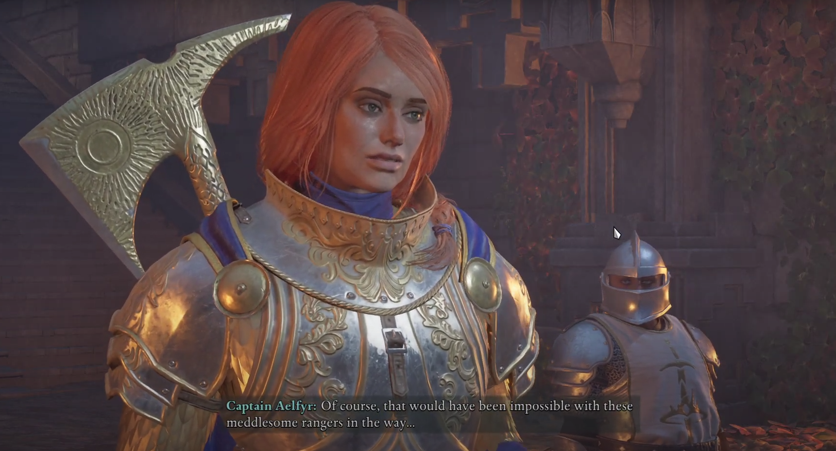 Captain Aelfyr lets you pass through the gate without a fight, allowing you to continue the quest.